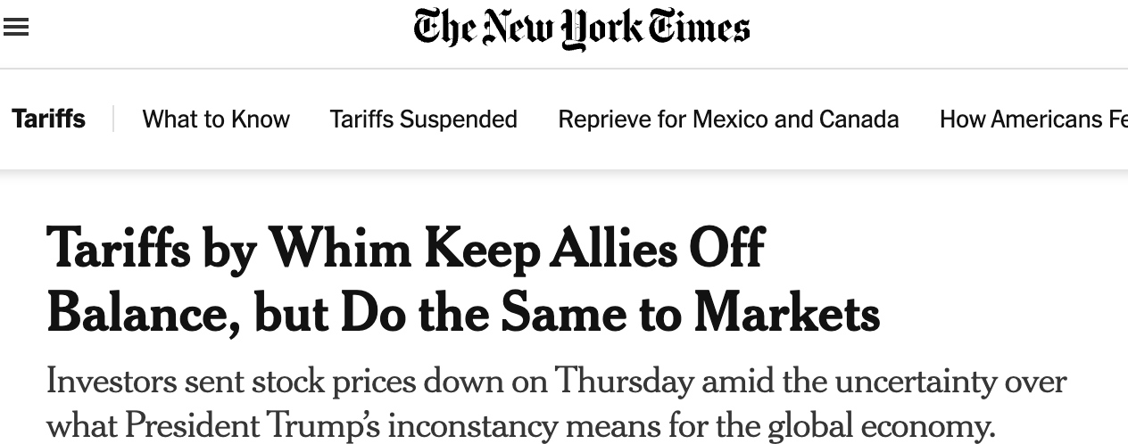 Tariffs by Whim Keep Allies Off Balance, but Do the Same to Markets. New York Times