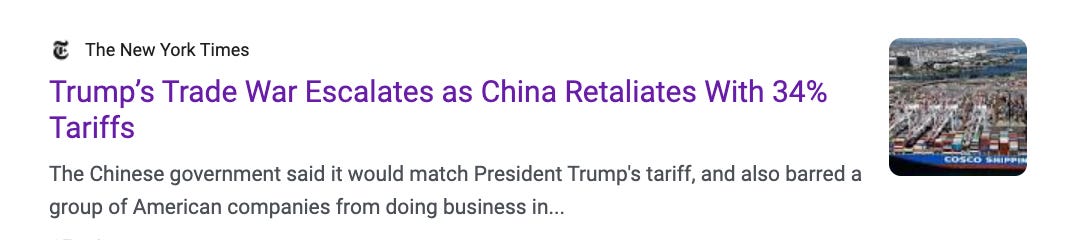 Trump’s Trade War Escalates as China Retaliates With 34% Tariffs. NYT